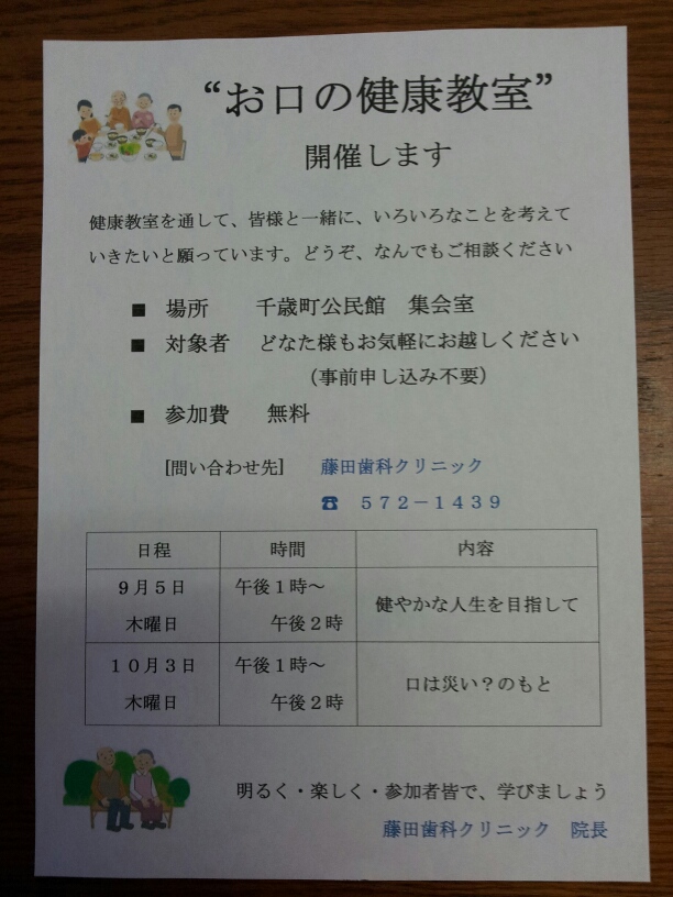 9月に、近所の公民館で"お口の健康教室"を開くことになりました。